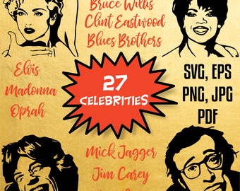 22 Celebrities Svg Kim Kardashian Clint Eastwood Marilyn Etsy