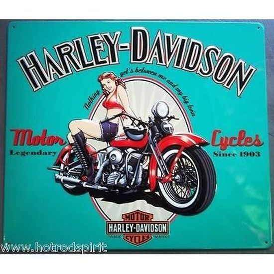 Plaque Publicitaire Harley Davidson Pin Up Moto Rouge Metal Tole